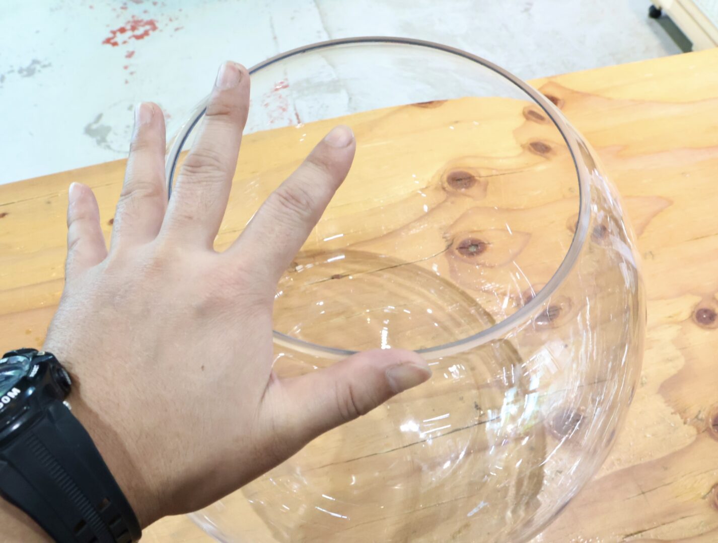 約30cmの丸型でこのサイズのガラス容器で水を入れても大丈夫なのが無く花器用を水入れて使っていた方もいましたが、花器用は水入れが出来ません。