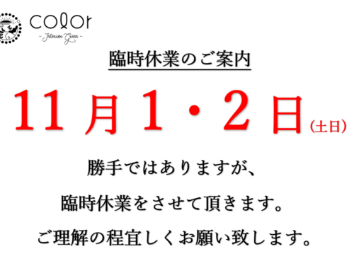 いつもご愛顧頂きありがとうございます。 11月1・2日(土・日) 臨時休業をさせ…
