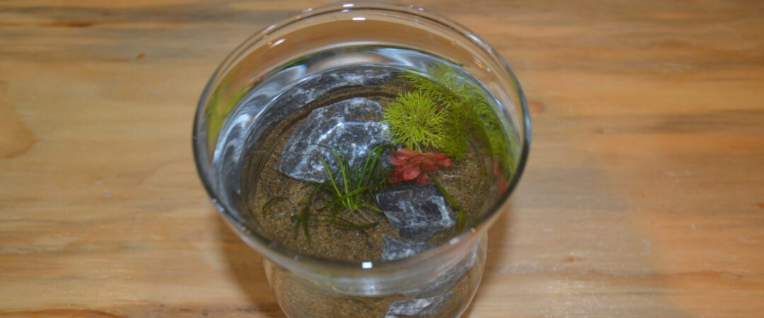 コップのようなサイズのフラワーベース ミニを使ってのグラスアクアリウム体験になります。